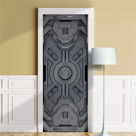 Alien Door Cover Mural, Svi-Fi Humanoid Laminated Sticker Decal, Single Piece. Pulaton. Multicolor. Decals, Stickers & Vinyl Art.