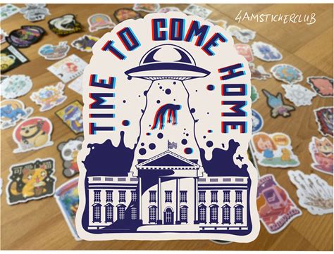 Alien Abduction Sticker: Funny UFO Art, White House Design
